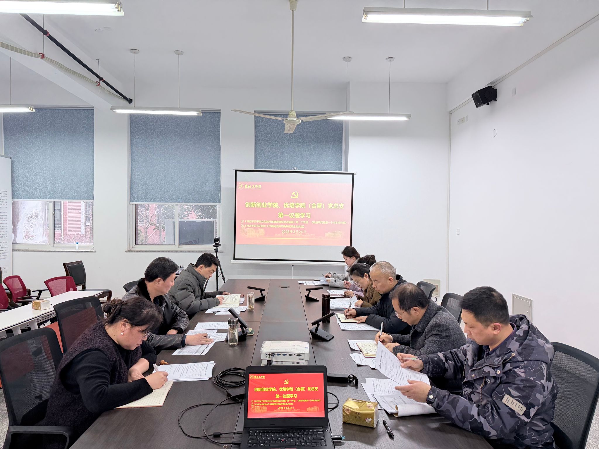 2026年3月24日下午,在希望大道校区仁和楼A202东会议室,创新创业学院、优培学院(合署)党总支委员会“第一议题”,深入传达学习《习近平关于树立和践行正确政绩观论述摘编》第一个专题:《政绩观问题是一个根本性问题》,《习近平总书记地方工作期间坚持正确政绩观生动实践》。学院党总支书记魏巍主持,党总支成员和相关科室负责人参加学习。