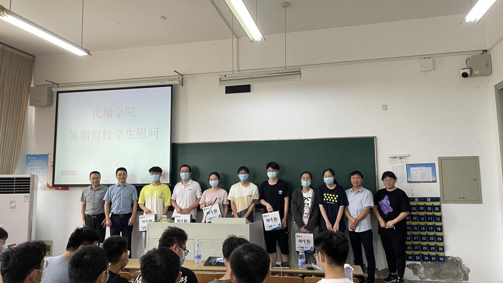 8月27日下午,在希望大道校区博学楼C102,优培学院举行暑期留校学生慰问活动。学院党总支书记李刚主持,院长王伟、副院长彭斌、责任班级辅导员以及暑期留校学生等120余人参加。