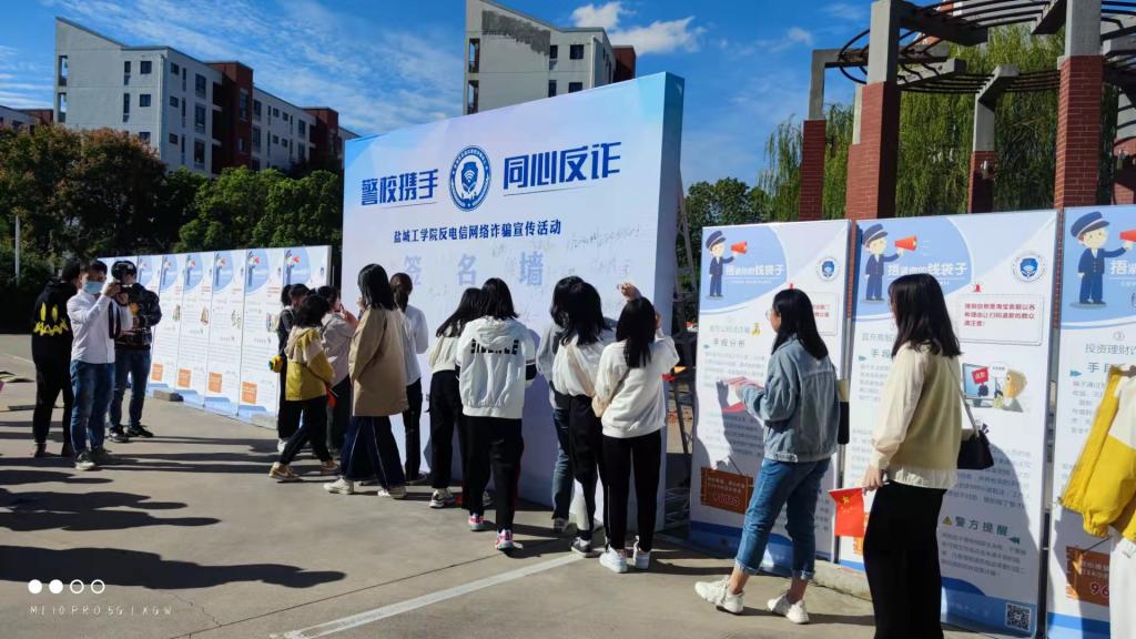 活动现场,邀请盐城市公安局刑侦支队反诈骗中心干警,通过列举刷单诈骗、冒充电商物流客服退款诈骗、贷款诈骗、校园贷清零诈骗等大学生常见的诈骗案例,有针对性地向大学新生宣传、讲解电信诈骗的危害及防范知识。以签订“全民反诈承诺书”、现场下载安装“国家反诈中心”APP等软件形式,进一步引导学生明白电信网络诈骗的危害,学会辨识诈骗行为,提高防诈骗意识。