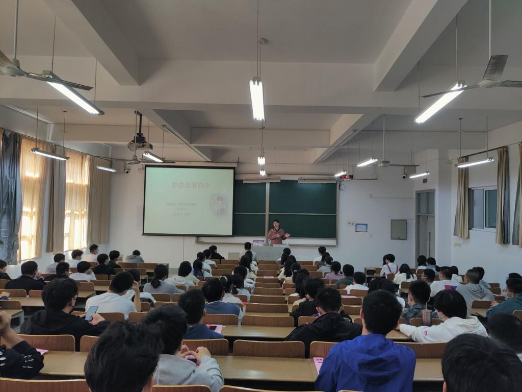 会上,朱凤宇老师做《算法竞赛简介》专题报告。他从“算法是什么”、“算法竞赛的发展历程”、“如何积极准备算法竞赛”等方面专业详实地向同学们普及了算法竞赛的相关知识,并鼓励同学们在夯实高数、英语、C语言基础上多多参加学科竞赛来提升自我。