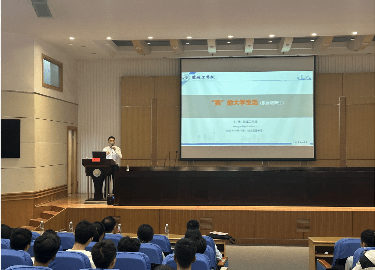 王伟以《我的大学生活》为题,从“双碳战略”谈起,结合我校师资力量、发展历程和规划蓝图,介绍了优培学院“强基础、宽口径、重后劲”的办学理念,结合当前国际国内的形势和盐工办学定位,从产教融合、校企互惠以及学校的一些课程体系改革措施等方面,与大家分享了他的求学历程、“我心目中的大学”以及“我心中的大学生的样子”。他希望同学们坚定理想信念,做好学之人,学会规划,在规划中收获成长;有知识会思考,在思考中实现飞跃;与人为善,学会协作,在协作中实现共赢;学会读书,在读书中开阔眼界,感知并创造美;积极参与锻炼,用体育精神涵养身心健康,成长为德智体美劳全面发展的新时代大学生;用自律的品格,让自己成长为适应社会的优秀人。