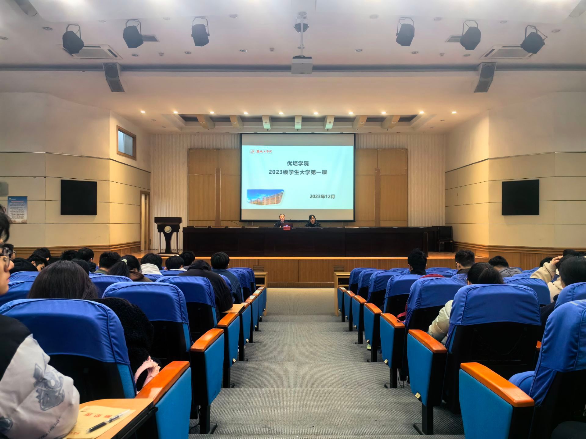 为了进一步提升新生的文明素养教育,帮助他们更好地规划大学生活,优培学院于12月6日下午,邀请学校原工会主席孙琴、学校关工委副主任闻建平,在建军东路校区图书馆报告厅开展系列讲座。本次讲座由优培学院学工办主任李凤芹主持,全体2023级新生参加。