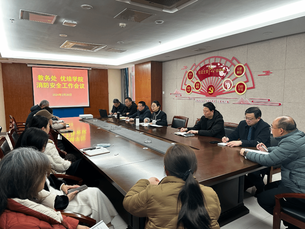 为深入学习贯彻习近平总书记关于消防安全和安全生产的重要论述,贯彻落实省消防安全委员会全体(扩大)会议精神和省教育厅关于消防安全工作的工作部署和学校相关工作部署,2月28日下午,教务处、优培学院在希望大道校区行政楼五楼会议室召开消防安全工作专题会议。会议由教务处处长、优培学院院长余晓红主持,教务处、优培学院全体教职员工参加。