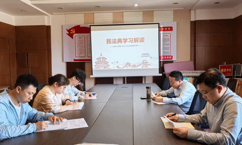 5月22日上午,优培学院在建军东路校区知行楼303召开“民法典宣传月”专题学习会。会议由院党总支书记李刚主持,全体教职工参加。会上,李刚介绍了《中华人民共和国民法典》的制定历程,并围绕其内容和特点、基本原则与具体法律规则之间的联系、立法精神与法典制度发展等方面内容,阐释了《民法典》以人民为中心的立法理念,并结合社会治理、法人管理、公民生活等方面的生动案例,详细介绍了《民法典》对于学校管理、师生学习生活的影响和指导意义。