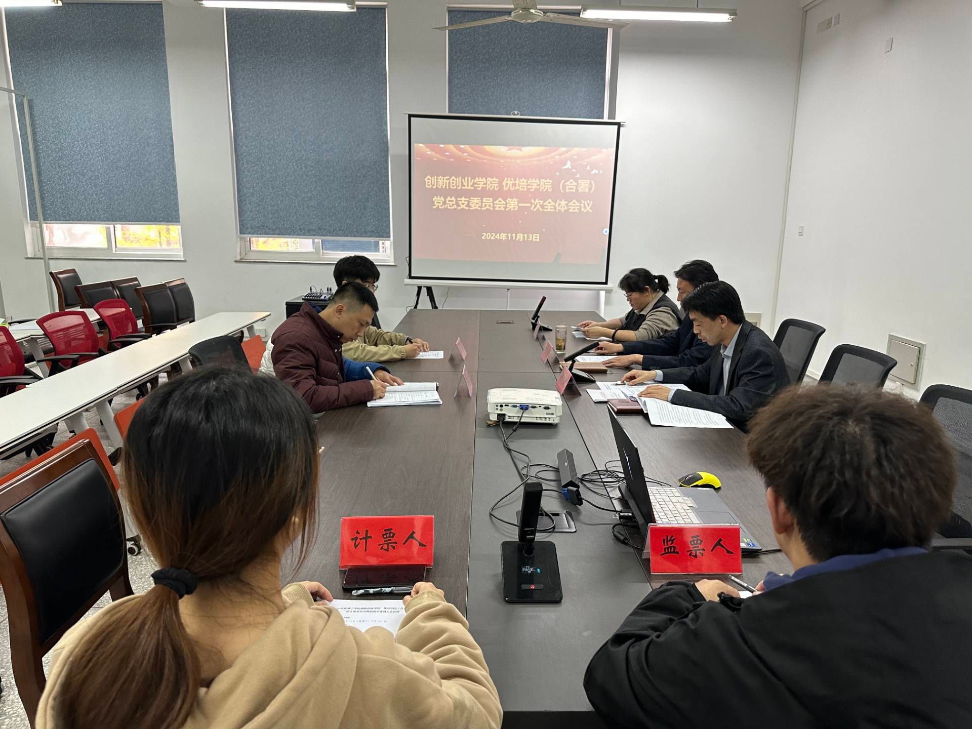 选举大会结束后,新一届党总支委员会召开第一次全体会议,以无记名投票方式,选举魏巍同志为创新创业学院、优培学院(合署)党总支书记、李凤芹同志为党总支副书记,并明确了各位委员职责分工。