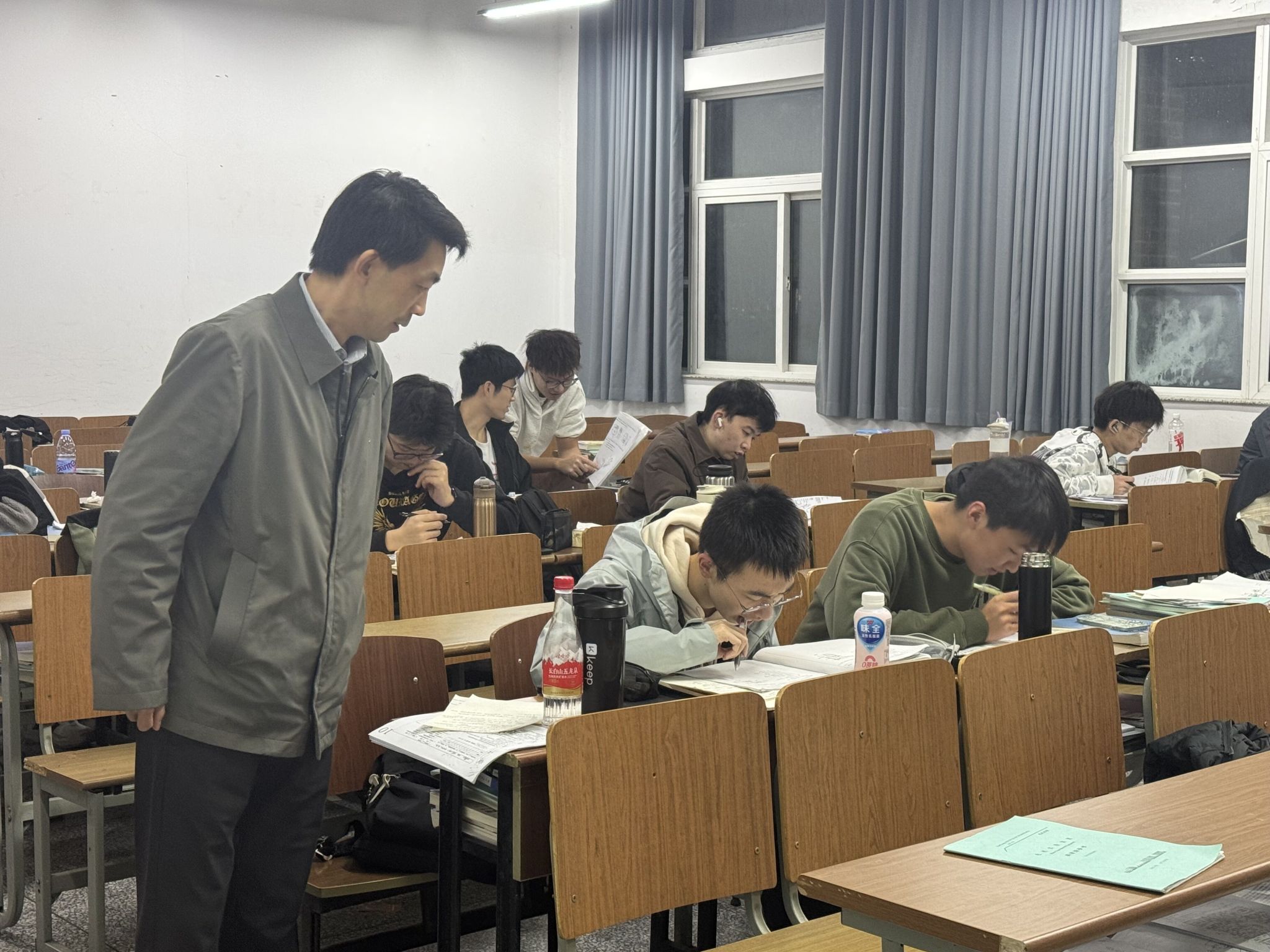 在晚自习教室,魏巍实地查看学生出勤情况,结合前期期中教学座谈会上学生反馈的问题,现场为学生答疑解惑,希望同学们珍惜良好的学习环境,形成比学赶超、互学互鉴的氛围,激发追求卓越、勇争一流的昂扬斗志,在顺利完成课程学习的同时,积极参加各类学科竞赛和社会实践活动,在学习和实践中锤炼本领、增长才干。