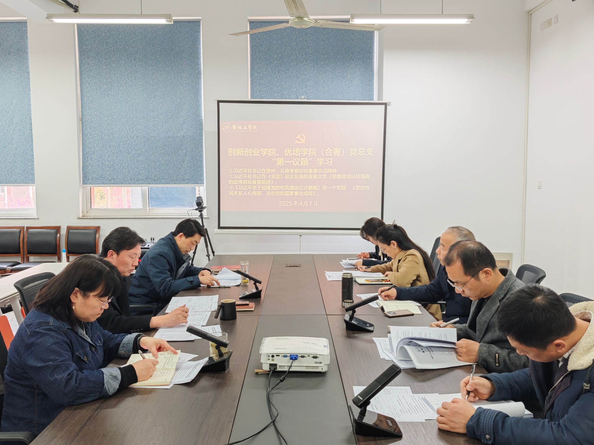 2025年4月1日下午,在希望大道校区仁和楼A202东会议室,创新创业学院、优培学院(合署)党总支以“第一议题”形式,深入传达学习习近平总书记在贵州、云南考察时的重要讲话精神,习近平总书记在《求是》杂志发表的重要文章《朝着建成科技强国的宏伟目标奋勇前进》,《习近平关于加强党的作风建设论述摘编》第一个专题《党的作风关系人心向背,决定党和国家事业成败》。学院党总支书记魏巍主持,党总支成员和相关科室负责人参加学习。