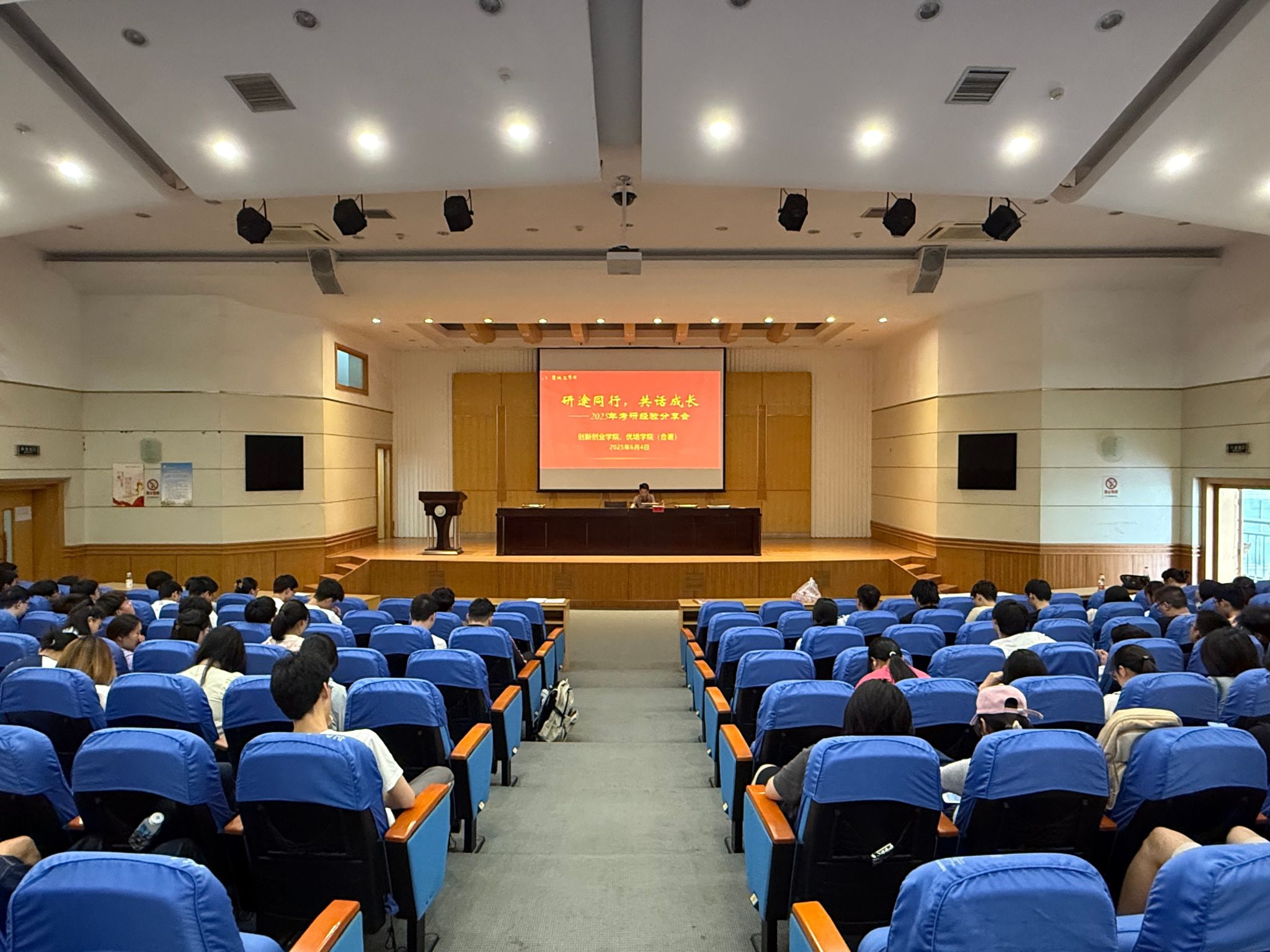 为充分发挥考研学子的榜样引领作用,助力学生明确发展目标,科学规划成长路径,增强考研信心,进一步夯实学风建设基础,6月4日下午,在建军东路校区图书馆报告厅,创新创业学院、优培学院(合署)举办“研途同行,共话成长”考研经验分享会。党总支书记魏巍、学工办副主任周高楼、团委副书记全莹、考取研究生同学代表及全体大一、大二年级学生参加,党总支副书记李凤芹主持分享会。