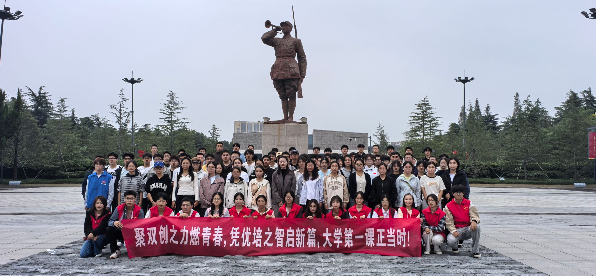 2025年10月15日下午,创新创业学院、优培学院(合署)联合范公路五星社区党群服务中心,以“聚双创之力燃青春,凭优培之智启新篇,大学第一课正当时”为主题,组织全体2025级新生走进新四军纪念馆。此次活动作为“大学第一课”系列实践之一,在团委副书记全莹、学生办公室副主任周高楼及辅导员张子怡的带领下,为新生们带来了一场浸润心灵的红色精神洗礼。